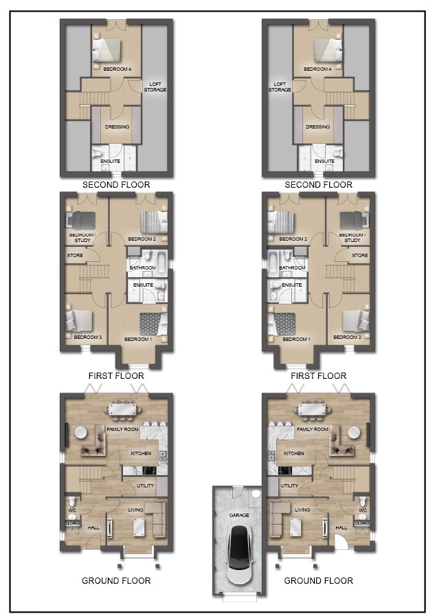 Each home has been thoughtfully designed for modern living, combining elegant architecture with practical luxury. Expansive interiors are bathed in natural light and feature high-quality finishes, sleek en-suites to principal bedrooms, indulgent bathrooms, and premium flooring throughout.